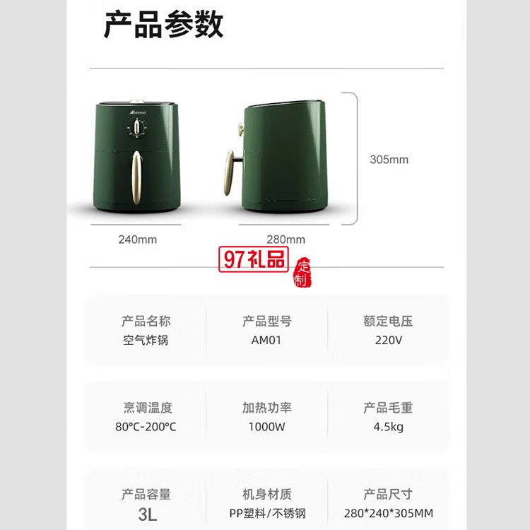 艾貝麗智能多功能電炸空氣炸鍋電烤3L AM01定制公司廣告禮品