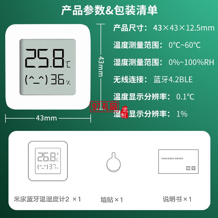 米家藍牙電子溫濕度計2嬰兒房室內溫度表器壁掛式定制公司廣告禮品