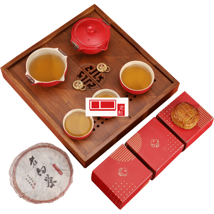 l配置:快客茶器(內含茶壺*1,茶海*1,茶杯*3) 月餅*6 茶餅*1 茶盤*1 禮盒*1 手提袋*1