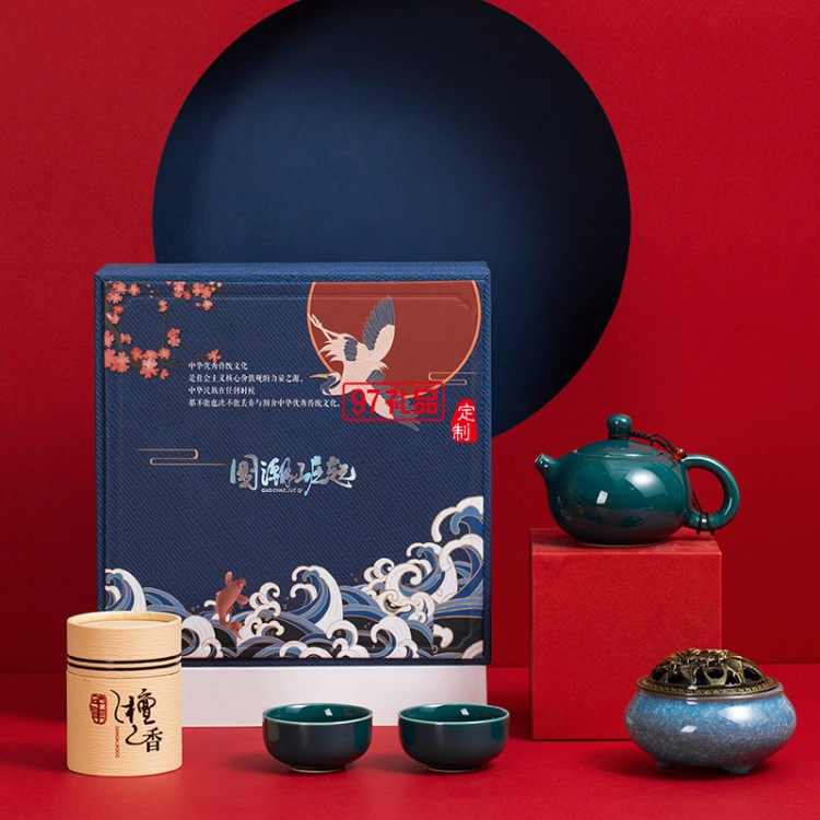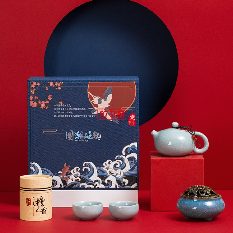 國(guó)潮禮盒中國(guó)風(fēng)復(fù)古文創(chuàng)中秋節(jié)陶瓷茶具禮品套裝