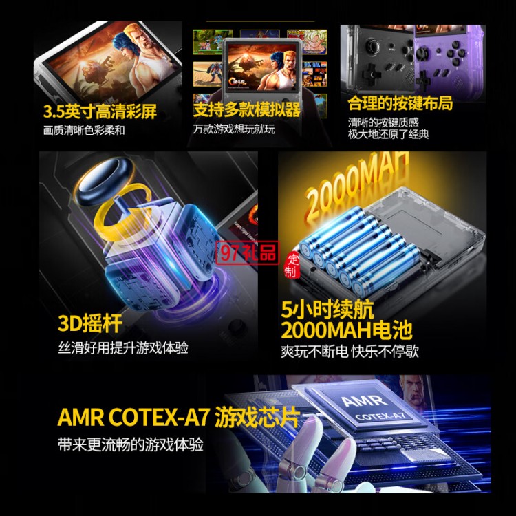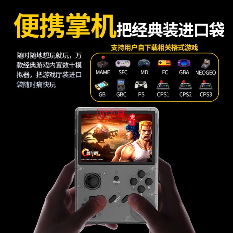 單搖桿3.5寸2.5D IPS 320*480      2000毫安 支持10大模擬器   內存64G/128G